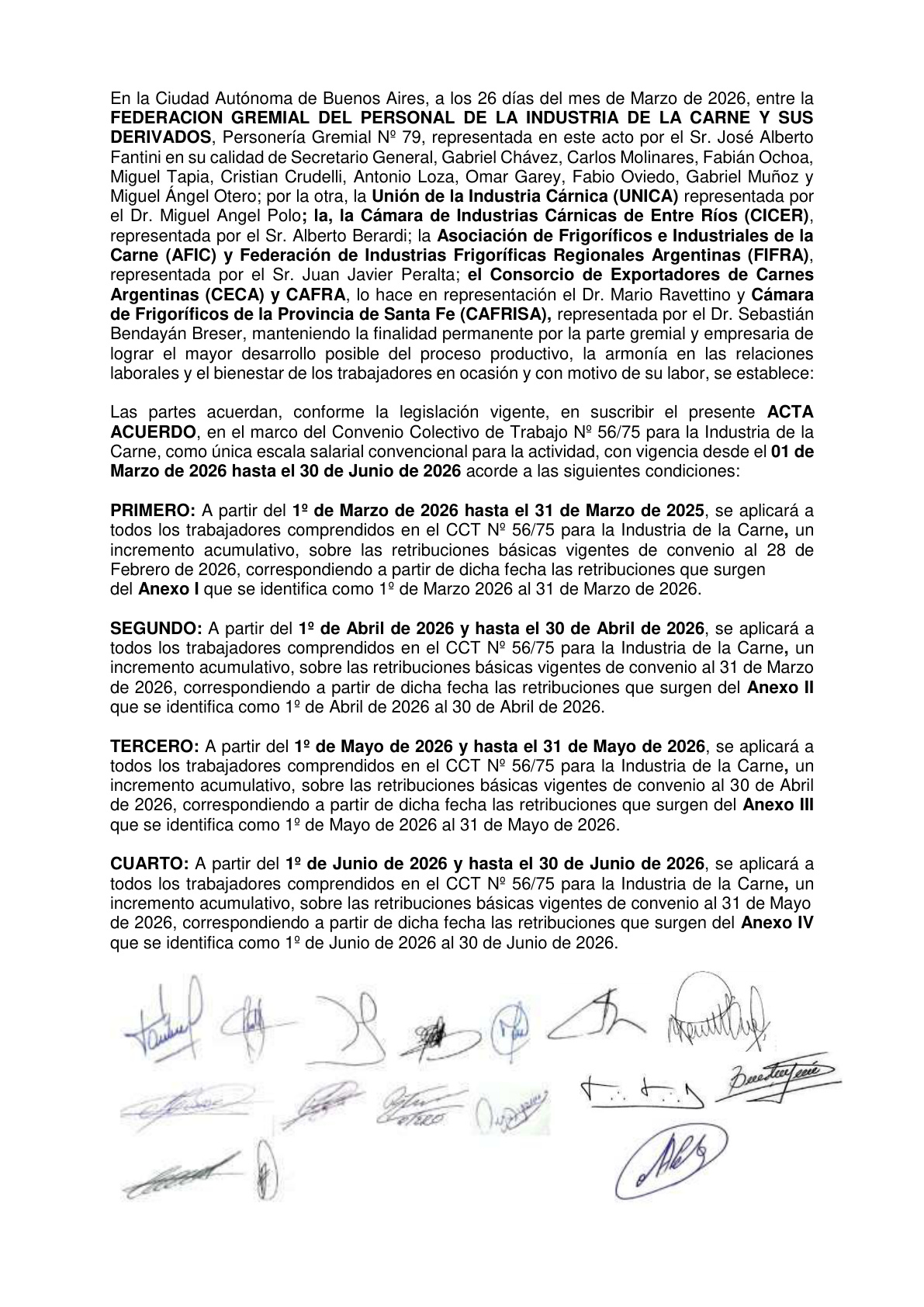 Acuerdo y Escalas Federacion de la Carne Marzo – Junio 2026